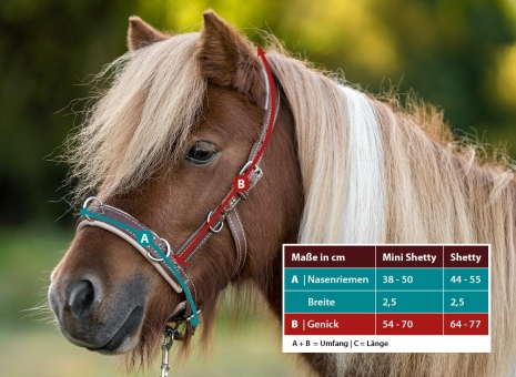 Aus diesem Grund haben wir unseren beliebten Kappzaum auch für Shettys und Mini-Shettys entwickelt. Die Shetty Größe eignet sich meist auch für Welsh-B Ponys. Traumhaft weiches Leder, hochwertige Beschläge und ein geschmeidiger Leder-Nasenriemen – das sind die Zutaten unseres Kappzaums für ein Shetland Pony.