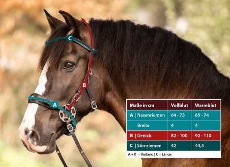 - Weiches Nappaleder: Der Zaum ist mit weichem Nappaleder unterfüttert, was für zusätzlichen Komfort und eine angenehme Passform sorgt.