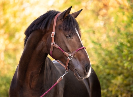 Das anatomisch geformte Genickstück lässt den Pferdeohren viel Freiheit und ist zusätzlich mit weichem Elchleder unterfüttert. Der flache Verschlusskarabiner zur Schonung des Kaumuskels bietet zusätzlichen Komfort. Das Halfter ist beidseitig sowie am Nasenriemen anpassbar.
