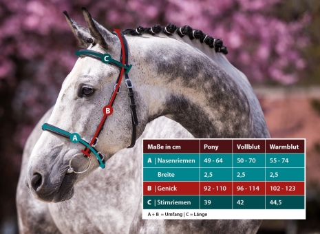 Kein Pferdekopf gleicht dem anderen. Die Rassen sind lediglich Beispiele, um Dir eine Vorstellung der Größe zu geben. Eine genaue Maßtabelle findest Du in der Bildergalerie.